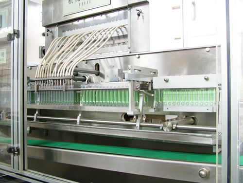 放倦、安瓶成型、灌裝、封尾、打批號(hào)、切尾、分切等22個(gè)工位由程序控制,連續(xù)自動(dòng)完成。